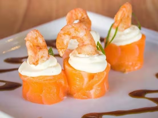 Joe CamaraoTiras de salmão enrolado com arroz, camarão e cream cheese(Medio (4 Un.)) R$ 22,00 / (Grande (8 Un.)) R$ 36,00