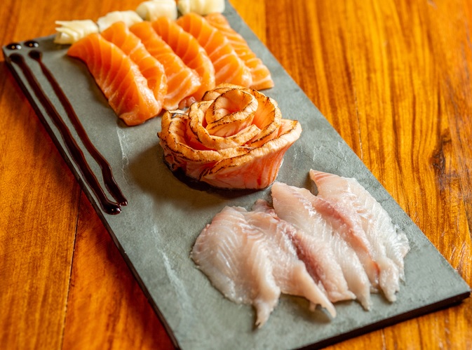 Sashimi Misto6 fatias de saint peter, 6 fatias de salmão e 6 fatias de salmão maçaricado (18 unidades)R$ 57,00