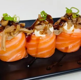 Joe ShimejiTiras de salmão enrolado com arroz e cogumelo refogado na manteiga(Medio (4 Un.)) R$ 22,00 / (Grande (8 Un.)) R$ 36,00