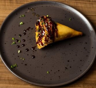 Temaki HolCreme cheese, cebolinha, salmão grelhado, enrolado na massa de harumaki(Medio) R$ 28,00 / (Grande) R$ 42,00